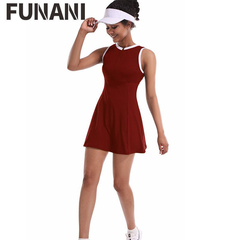 FUNANI Fashion Sleevless Tennis Dress with shorts for Women Gym Fitness Sportswear Solid Golf Badmin